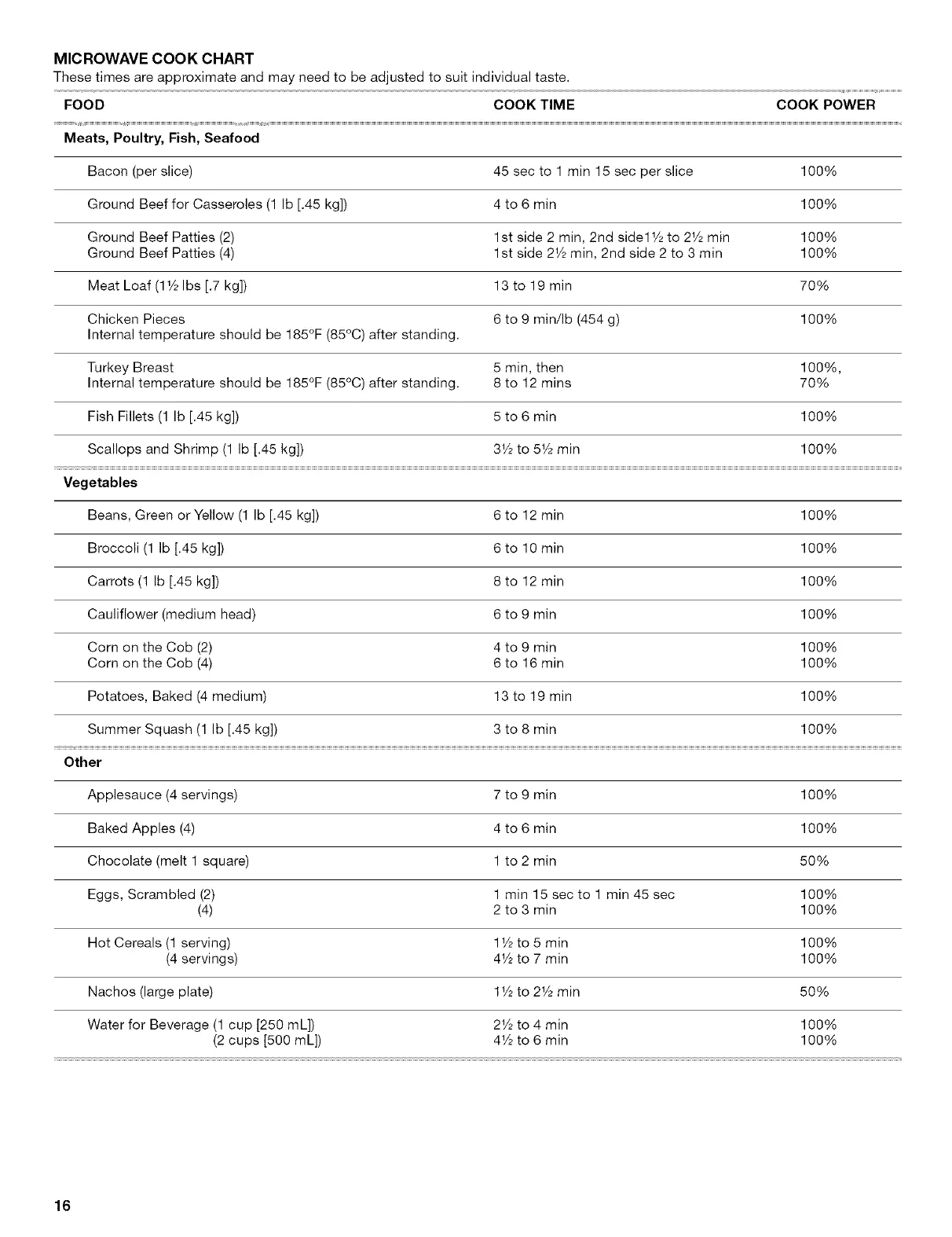 Ground Beef for Casseroles (1 Ib [.45 kg]) 4 to 6 min 100%