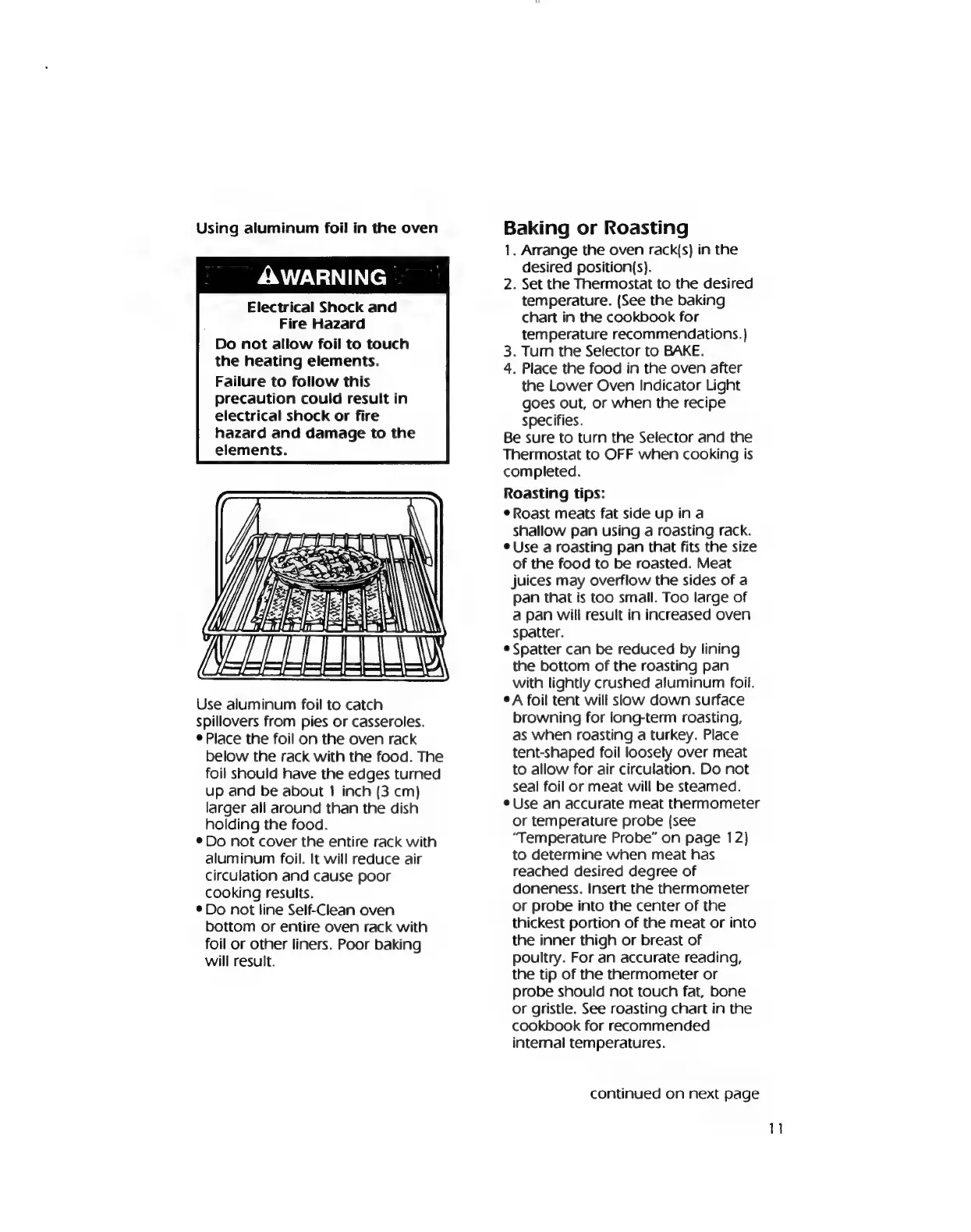 KitchenAid KEMS306B - Rack and Pan Placement; Using Aluminum Foil in the Oven; Baking or Roasting -Eeen