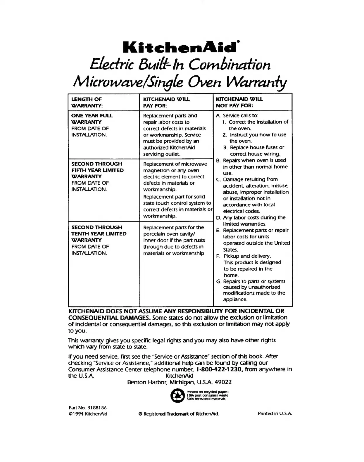 KitchenAid KEMS306B - 1994 Kitchenaid