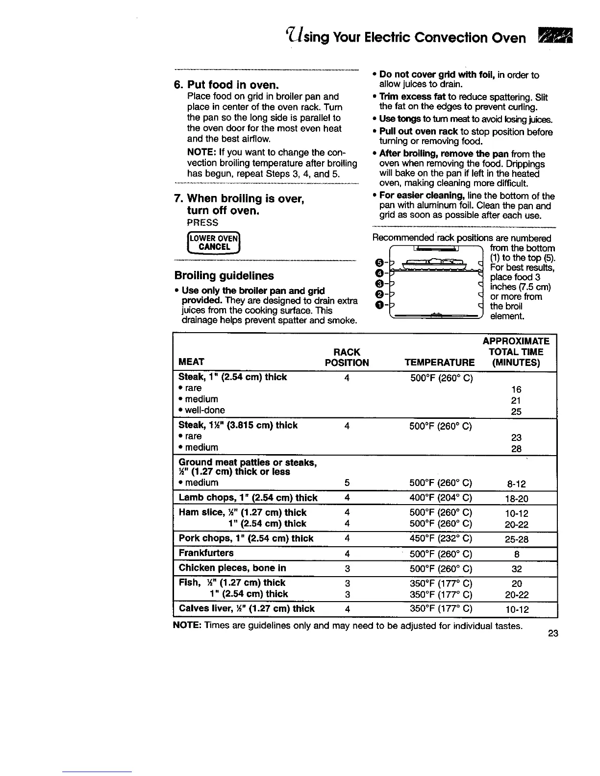 Broiling guidelines
