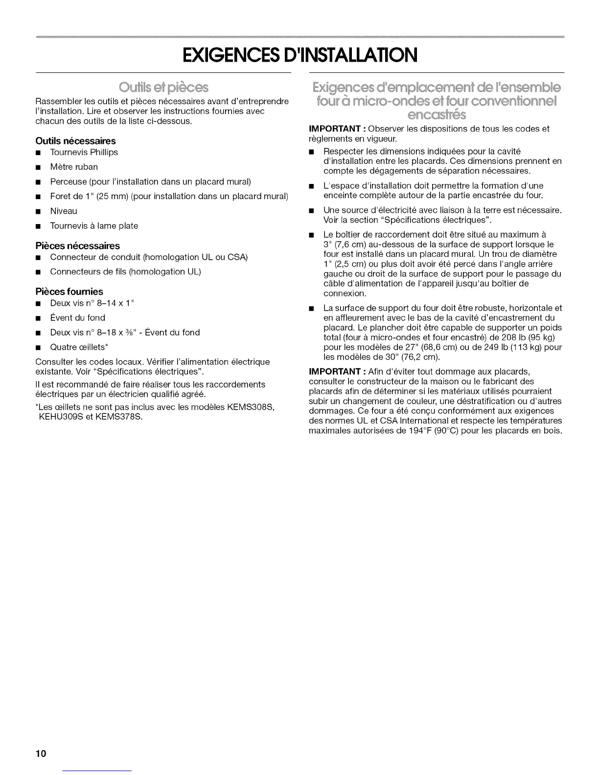 total (four a micro-ondes et four encastre) de 208 Ib (95 kg)
