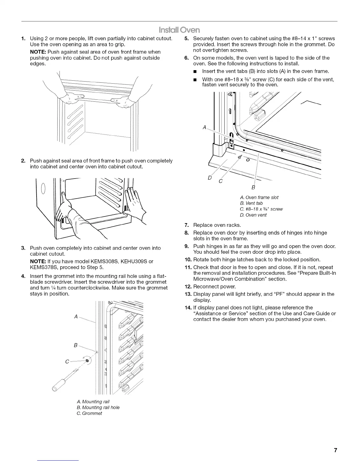 Using 2 or more people, lift oven partially into cabinet cutout.