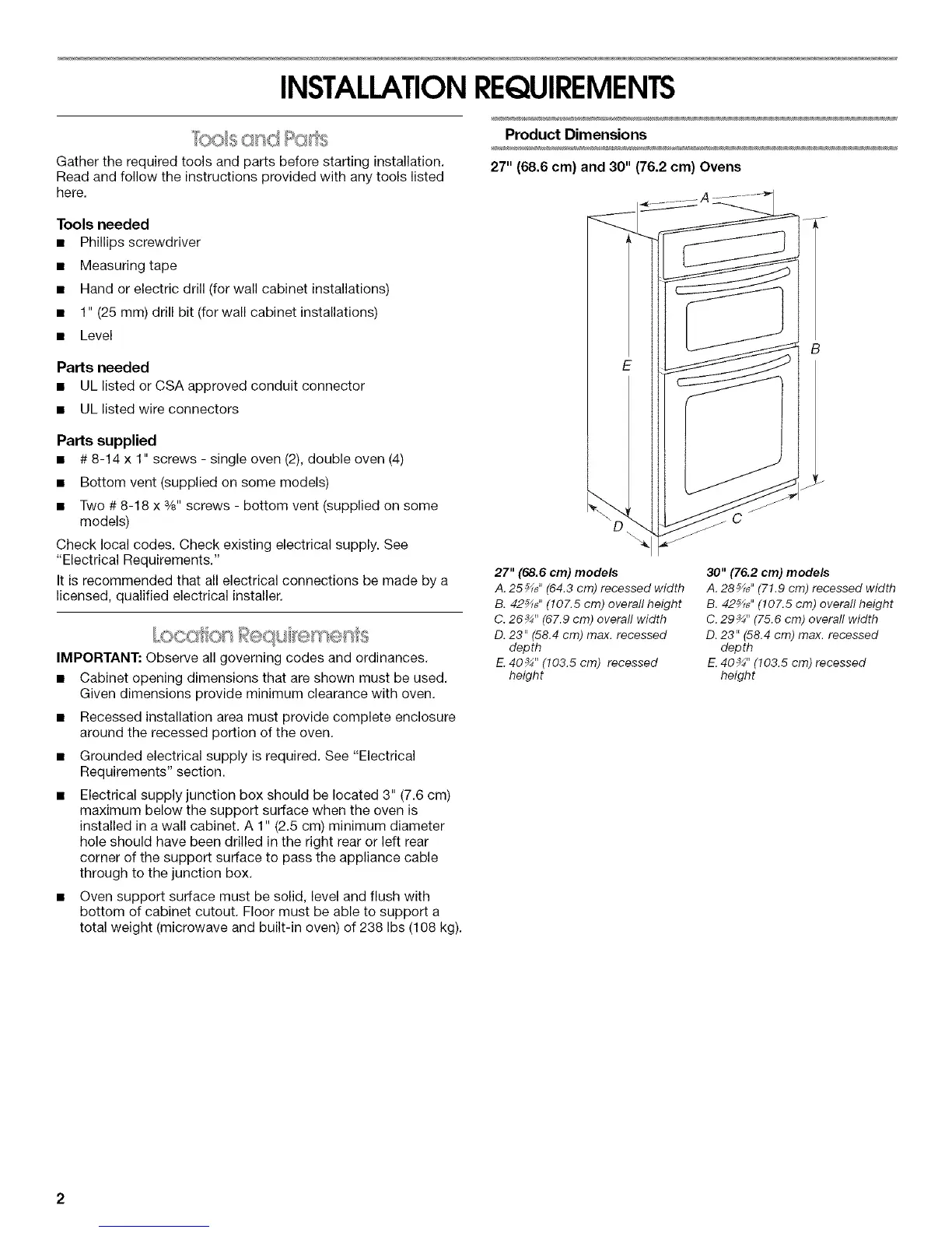 27" (68.6 cm) and 30" (76.2 cm) Ovens