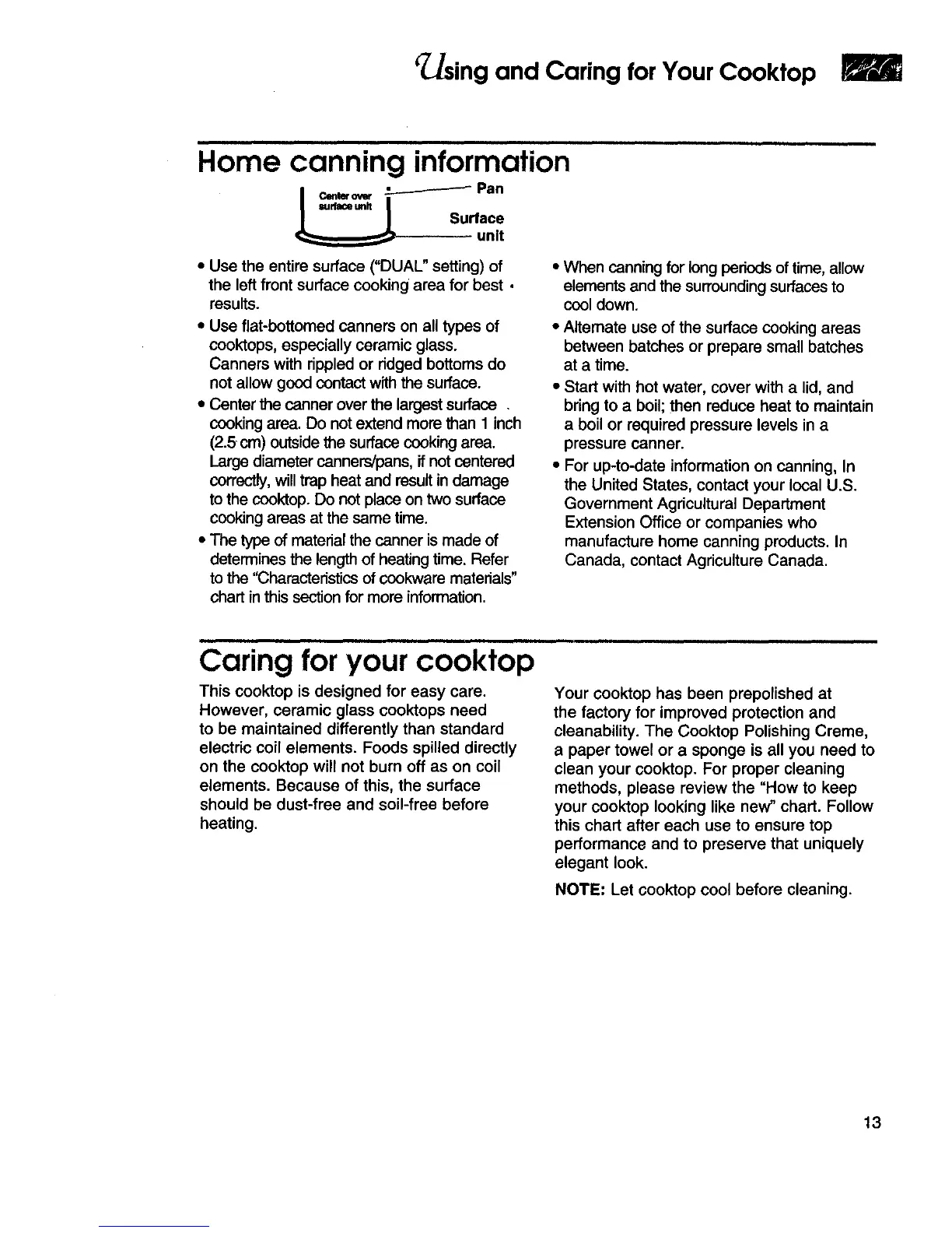 r ing and Caring for Your Cooktop
