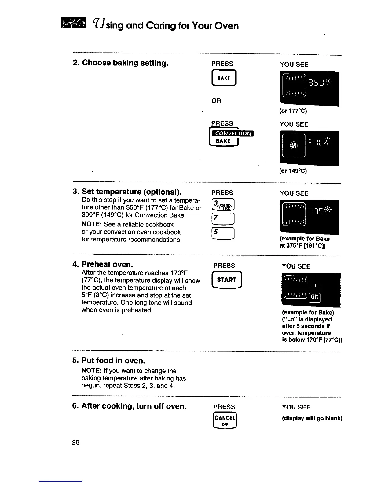 ture other than 350°F (177°C) for Bake or