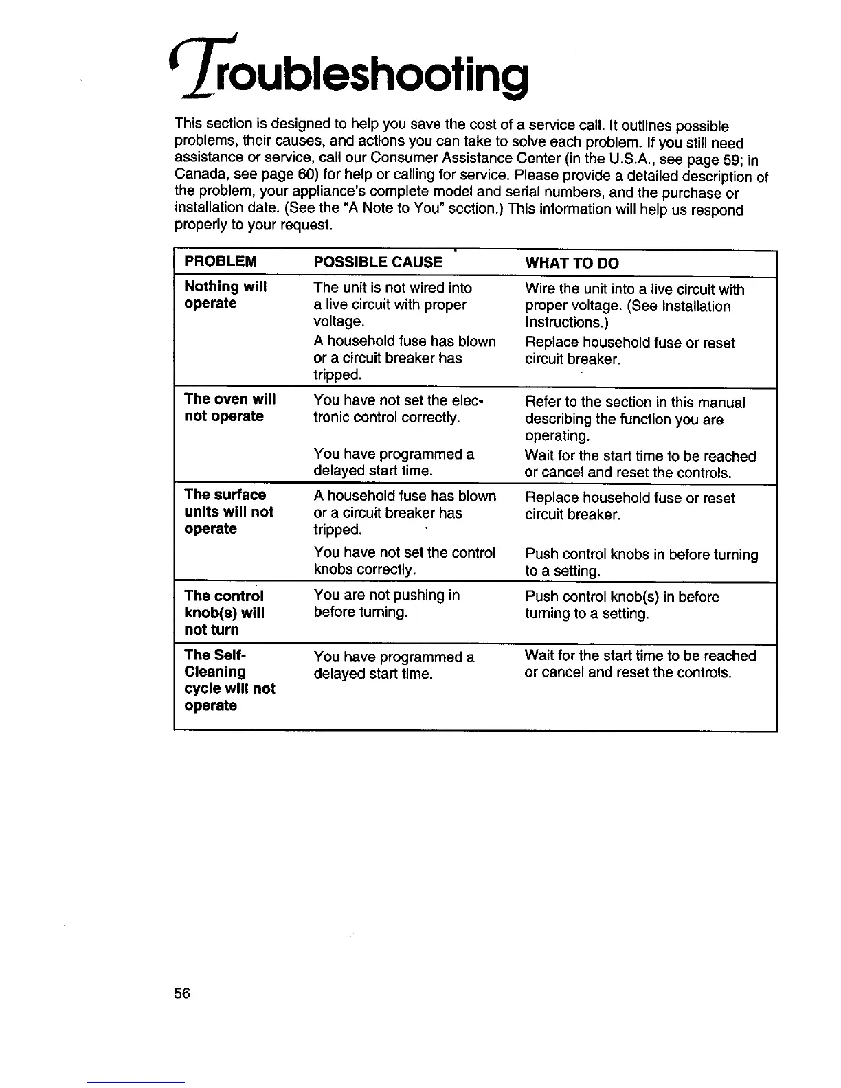 assistance or service, call our Consumer Assistance Center (in the U.S.A., see page 59; in