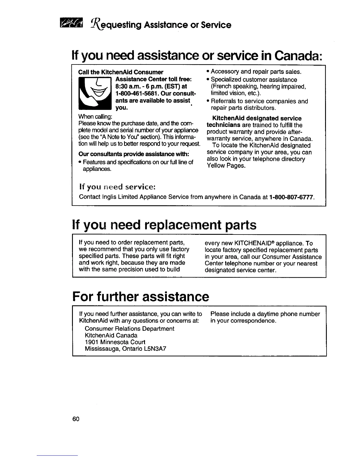 Contact Inglis Limited Appliance Service from anywhere in Canada at 1-800-807-6777.
