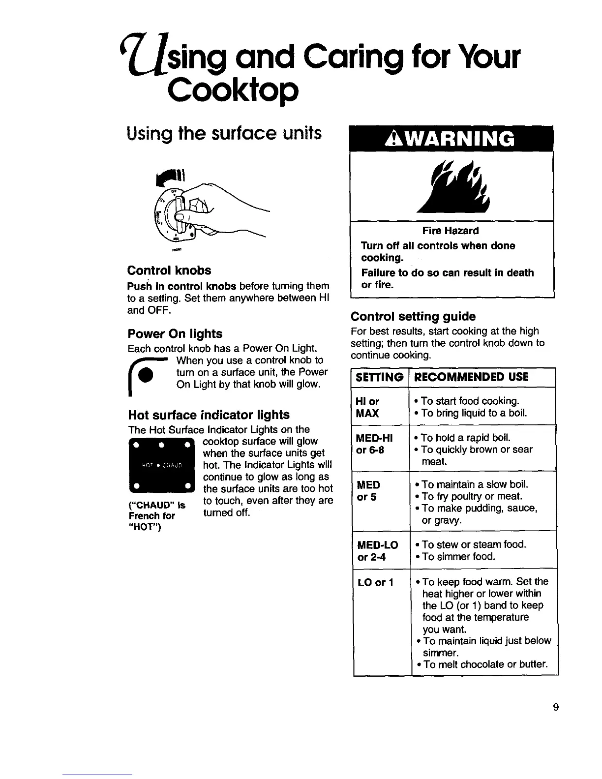Push in control knobs before turning them