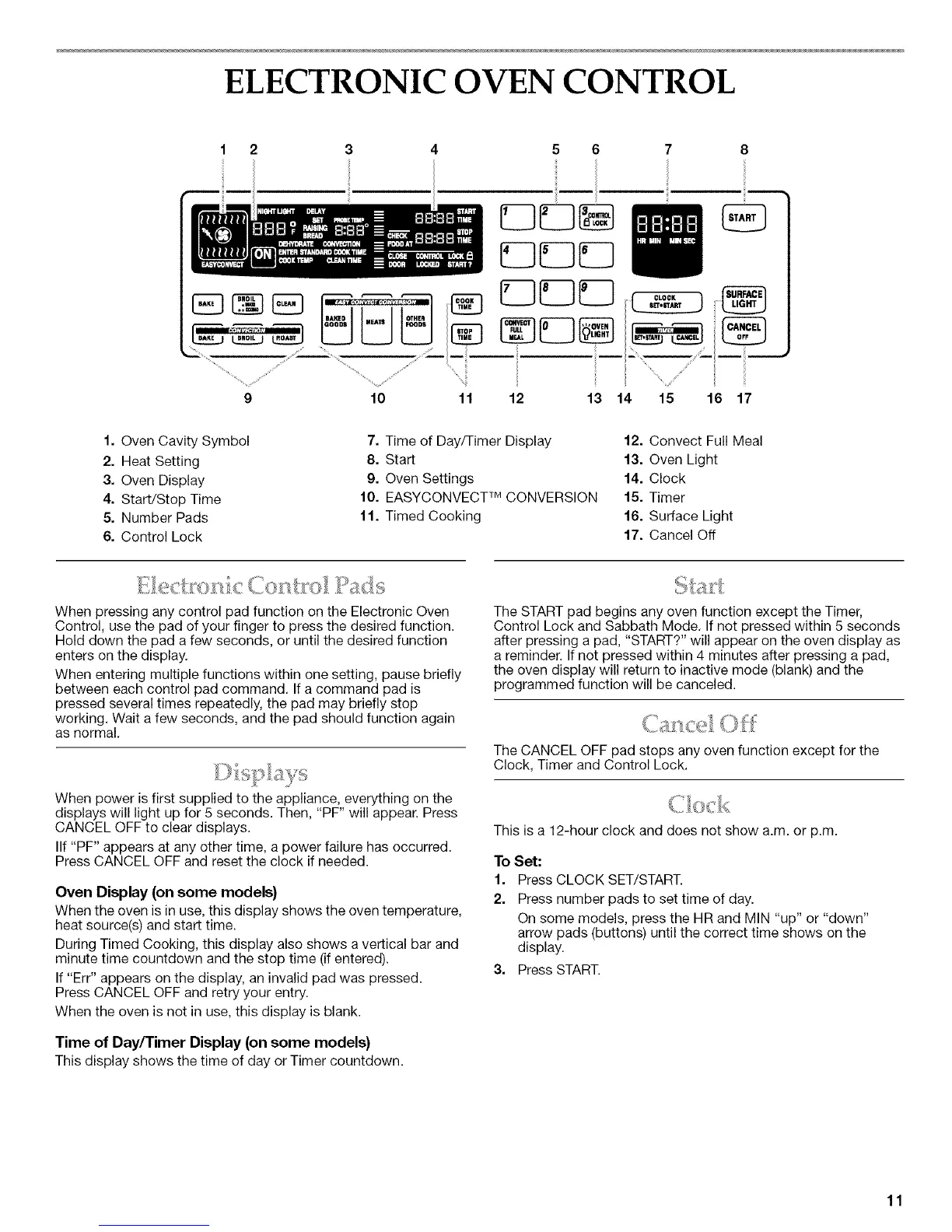 The CANCEL OFF pad stops any oven function except for the