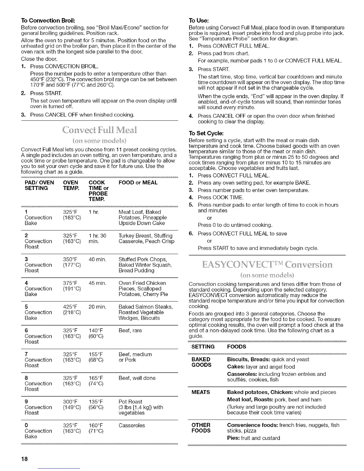 Convection (149°C) (56°C) (3 Ibs [1.4 kg]) with