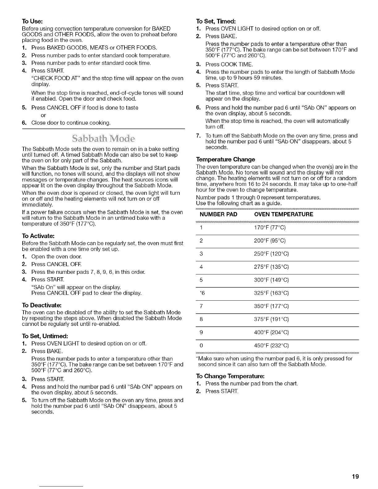 appear lit on the oven display throughout the Sabbath Mode.