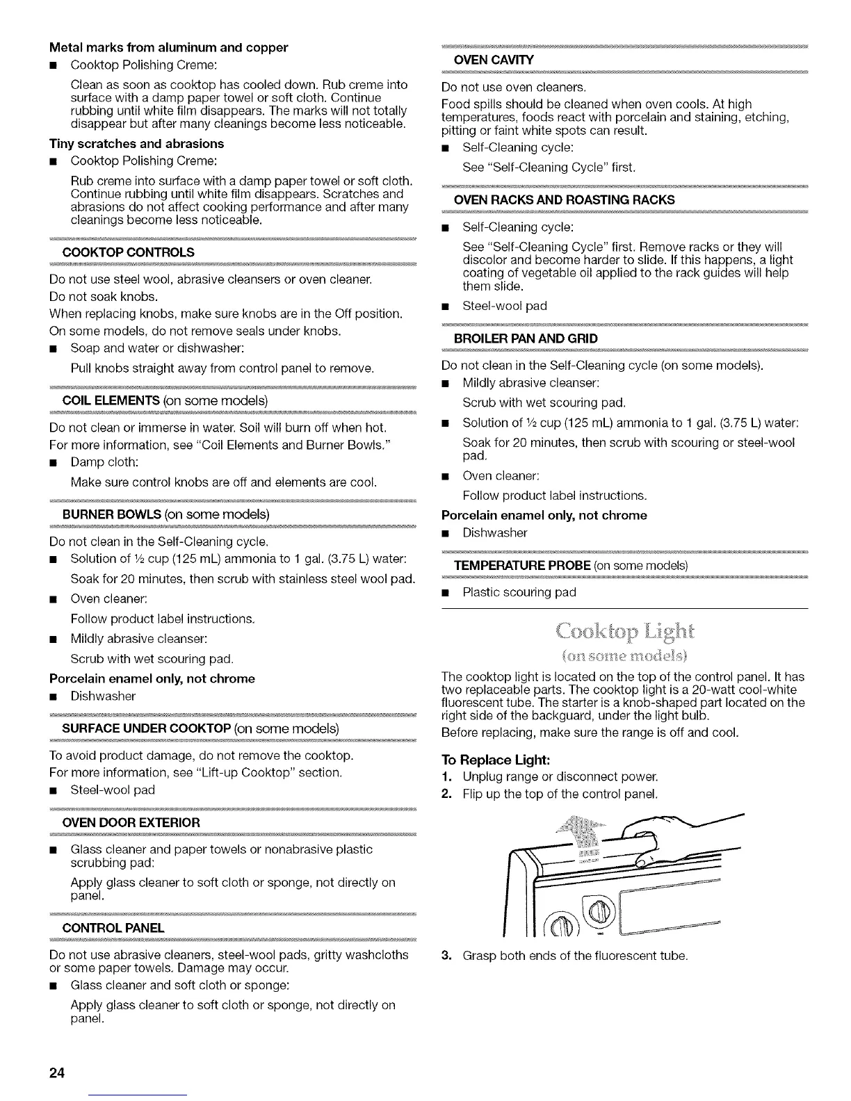 two replaceable parts. The cooktop light is a 20-watt cool-white