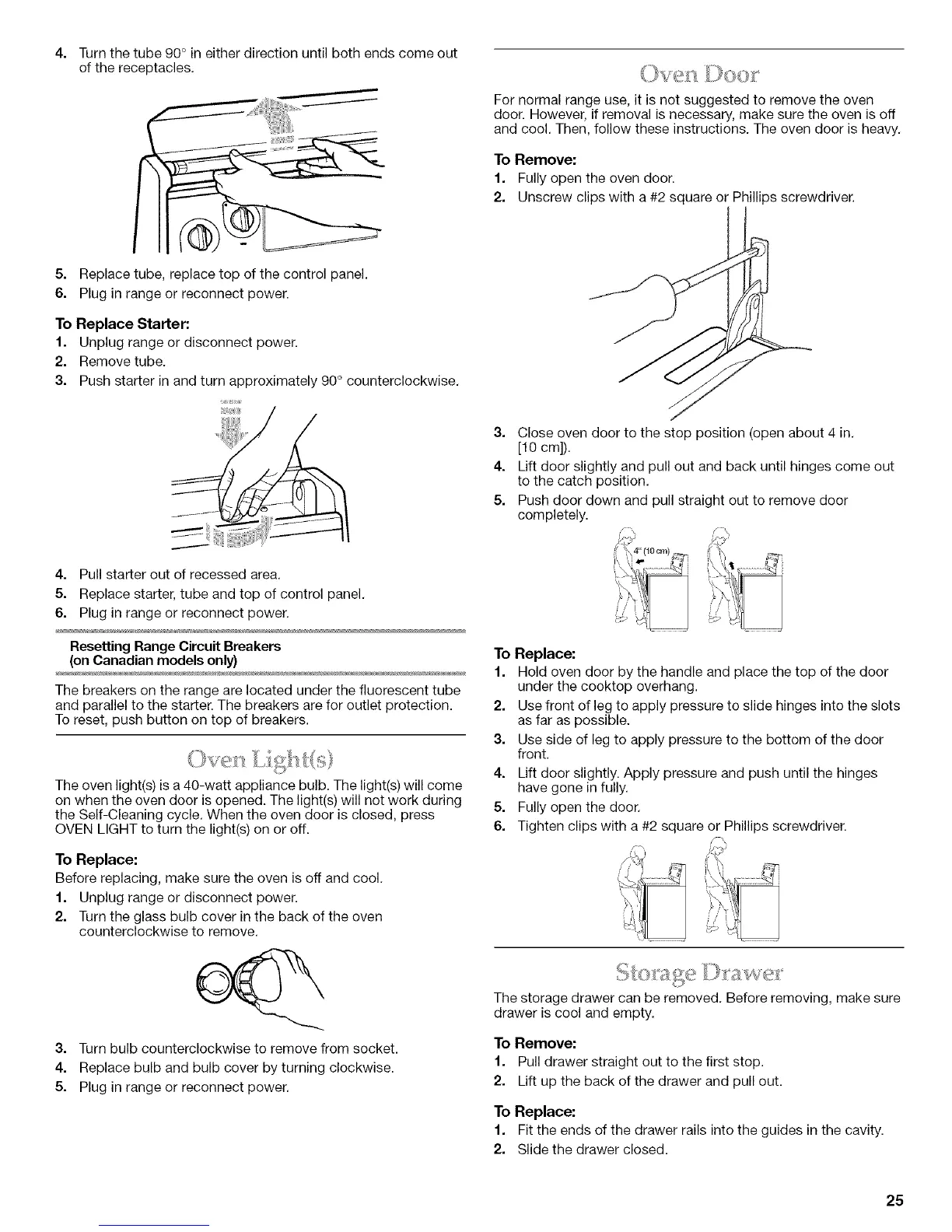 5. Replace starter, tube and top of control panel.