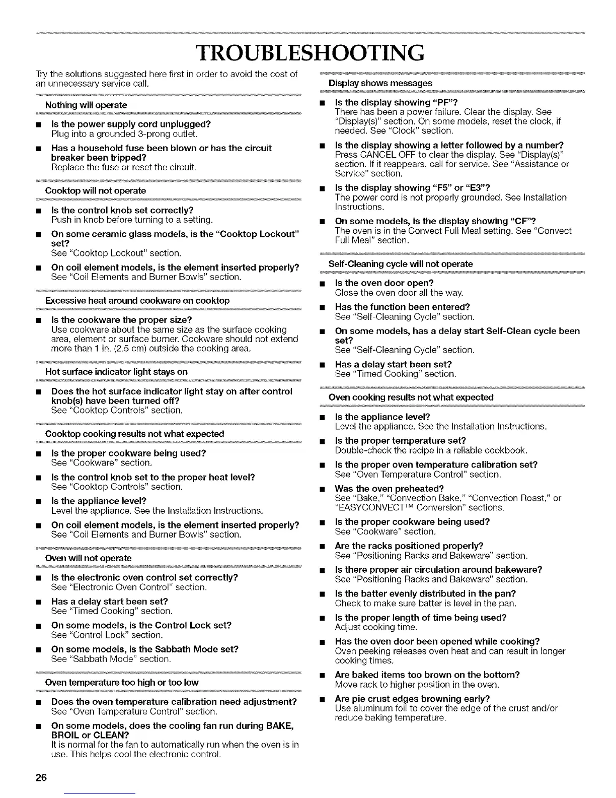 section. If it reappears, call for service. See "Assistance or