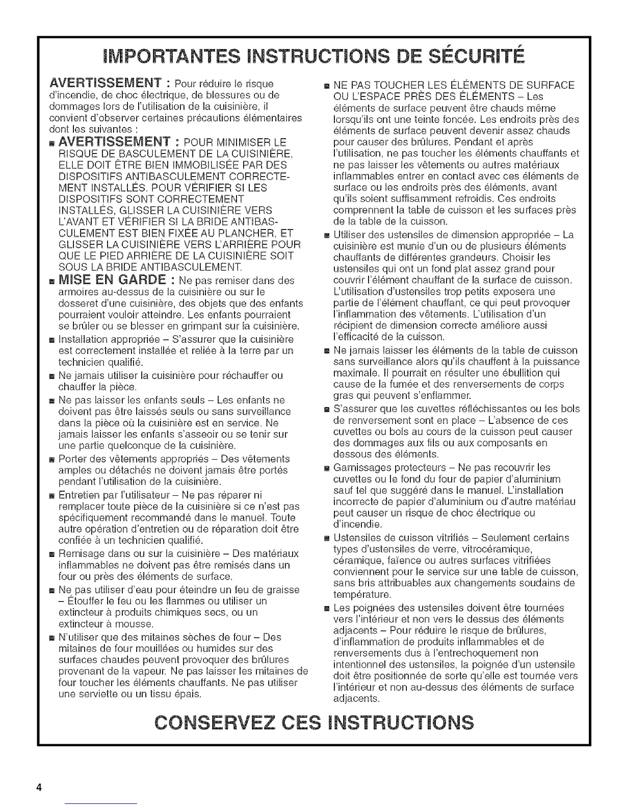 CONSERVEZ CES INSTRUCTIONS