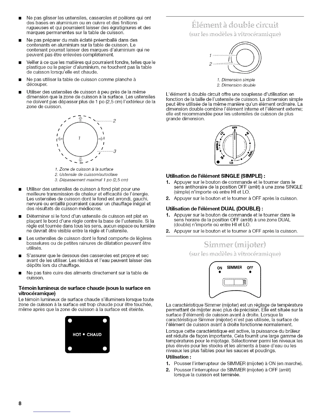 fonction de la taille de I'ustensile de cuisson. La dimension simple