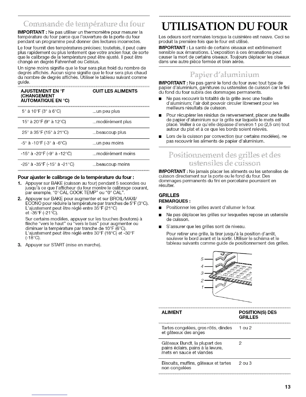 • Ne pas deplacer les grilles sur lesqueles repose un ustensile
