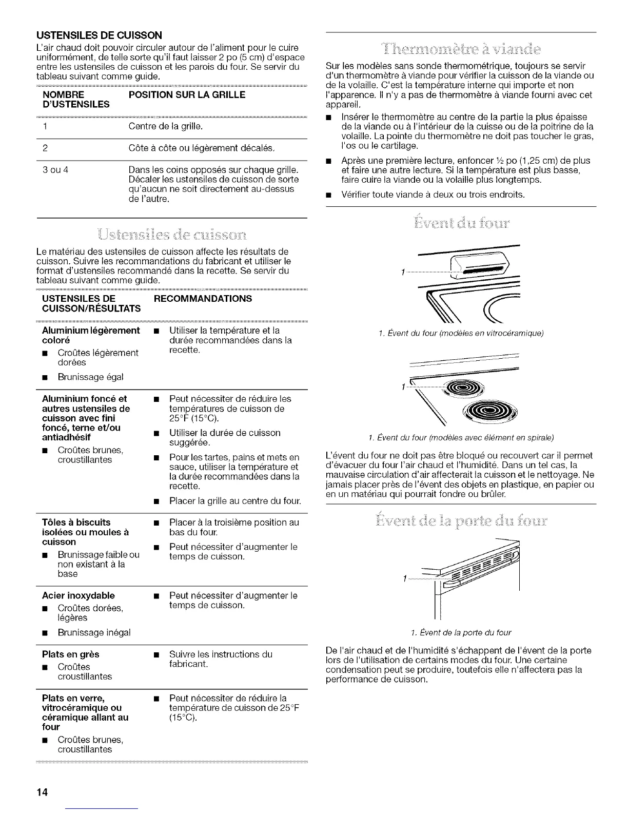 entre les ustensiles de cuisson et les parois du four. Se servir du