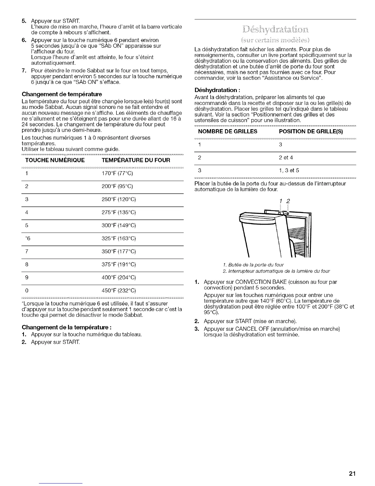 deshydratation peut _tre reglee entre 100°F et 200°F (38°C et