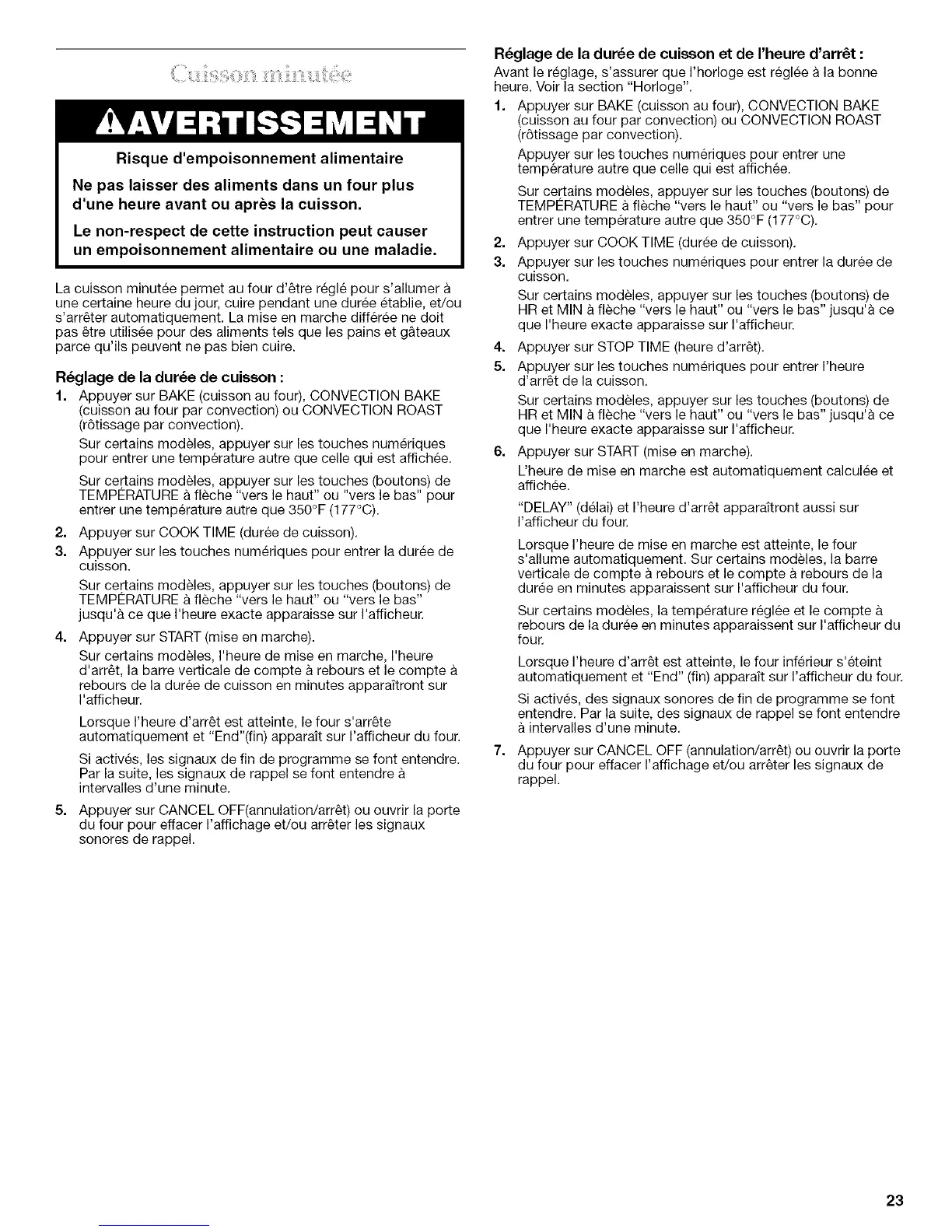 s'arr_ter automatiquement. La mise en marche differee ne dolt