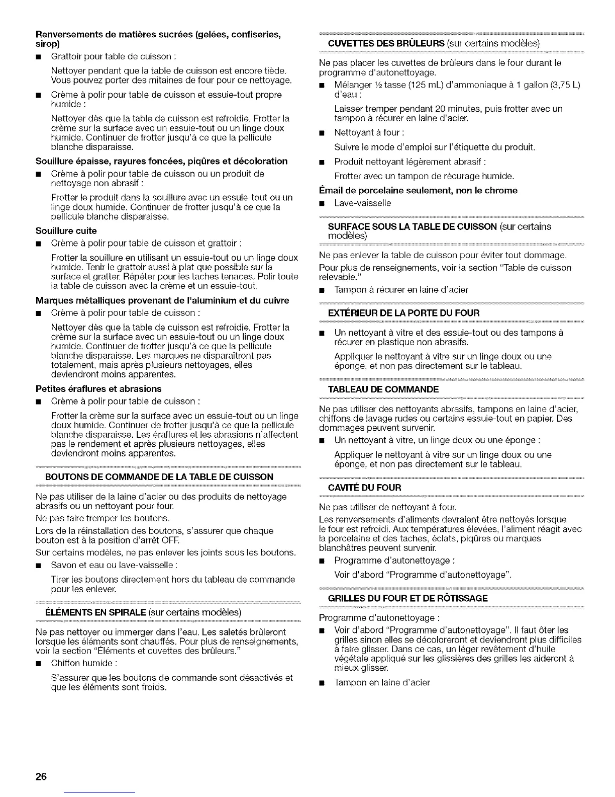 Nettoyer pendant que la table de cuisson est encore tiede.