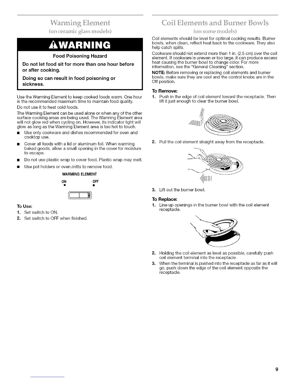 Cookware should not extend more than 1 in. (2.5 cm) over the coil