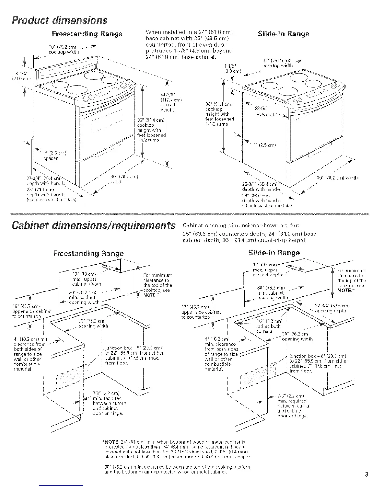 *NOTE: 24" (61 cm) rain. when bottom of wood or metal cabinet is
