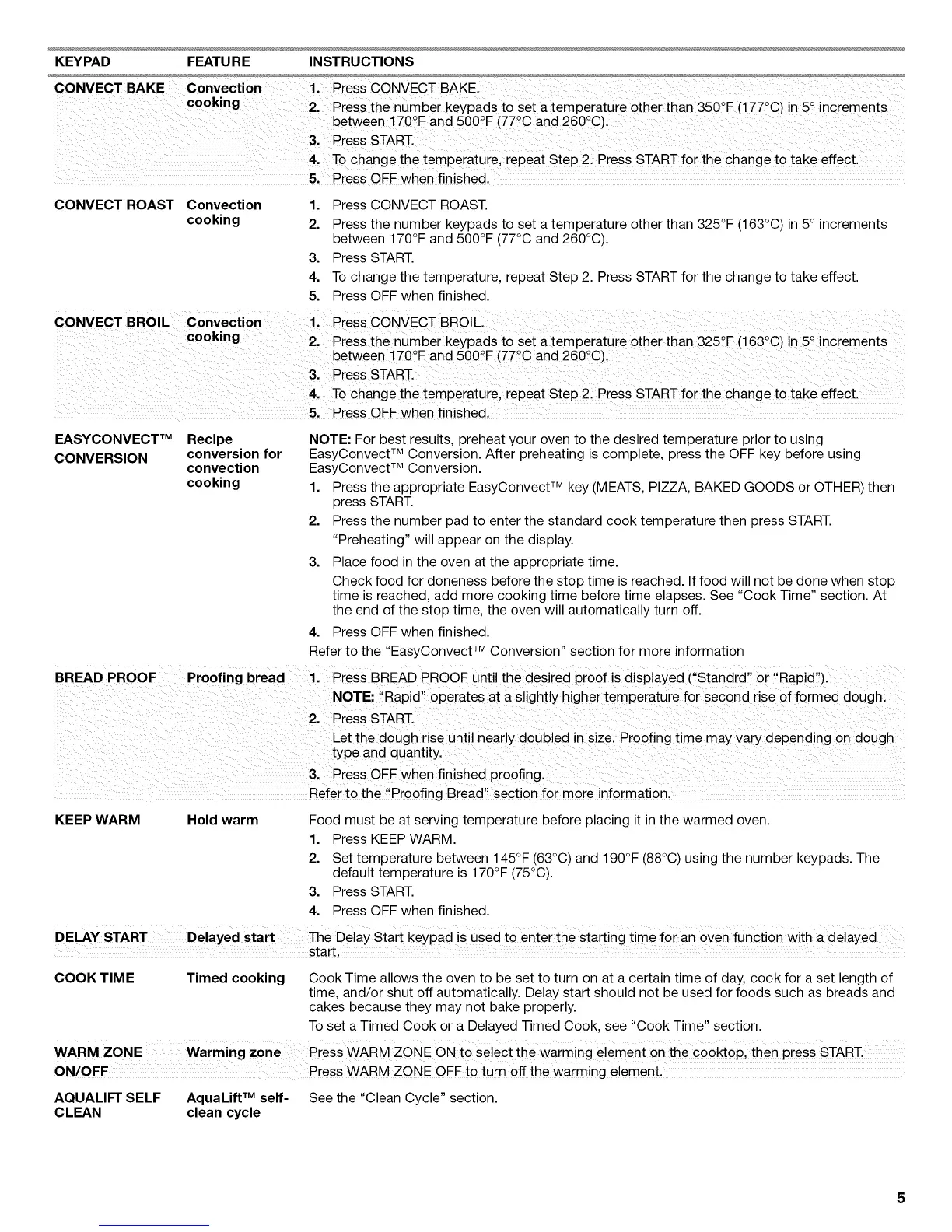 KEEP WARM Hold warm Food must be at serving temperature before placing it in the warmed oven.