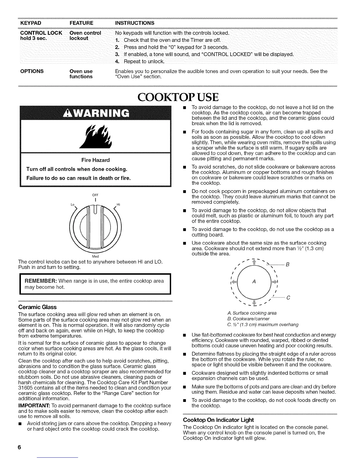 ceramic glass cooktop. Refer to the "Range Care" section for