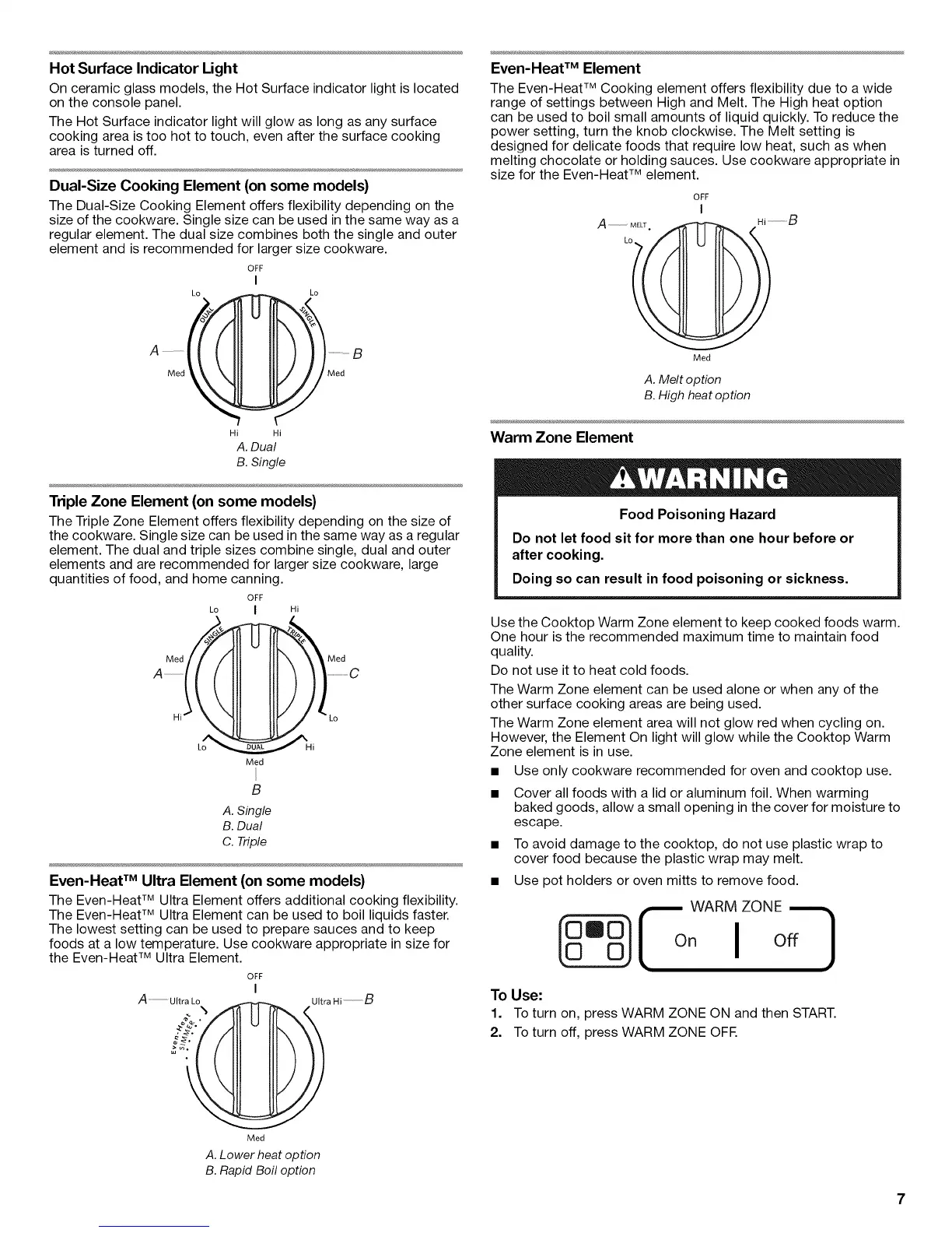 Use the Cooktop Warm Zone element to keep cooked foods warm.