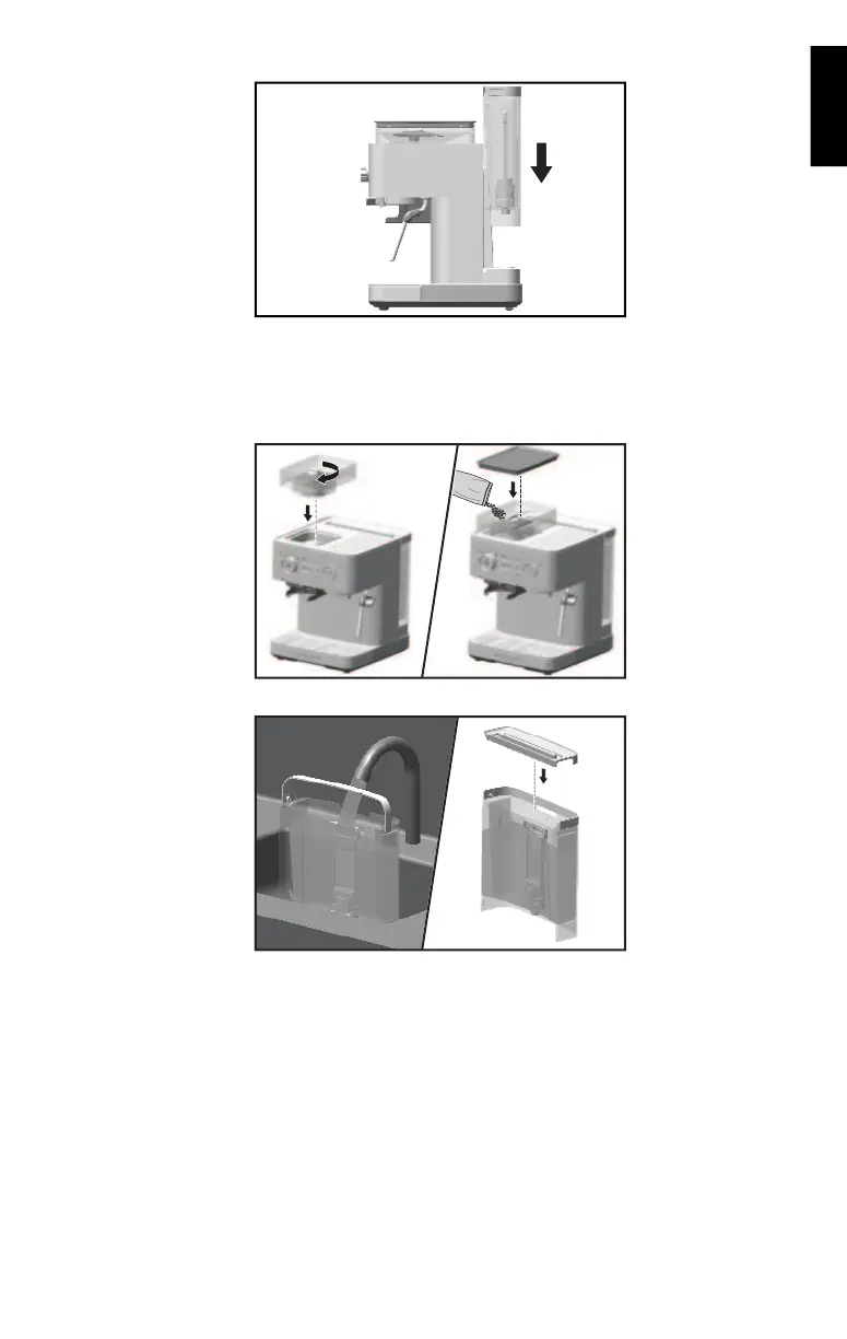 encaje en su lugar. Agregue los granos de café enteros. Coloque la tapa en la Tolva de