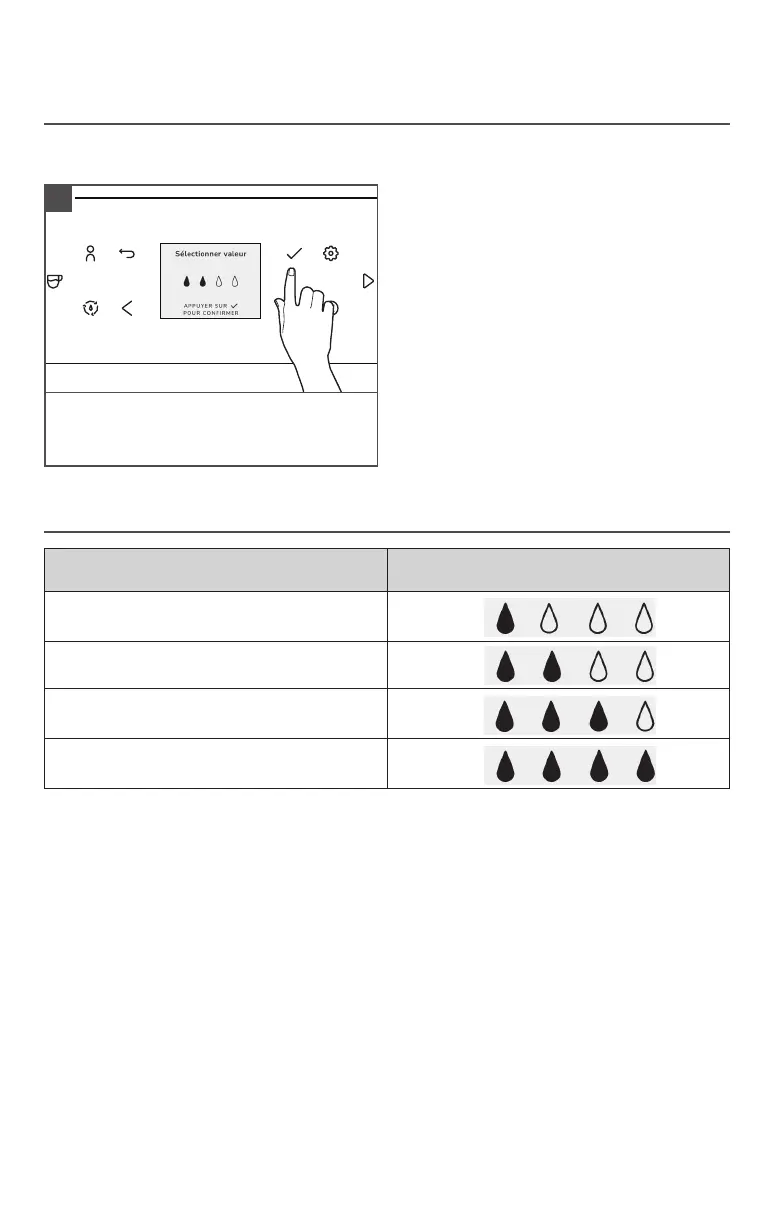 À l’écran, sélectionner la dureté de l’eau lue