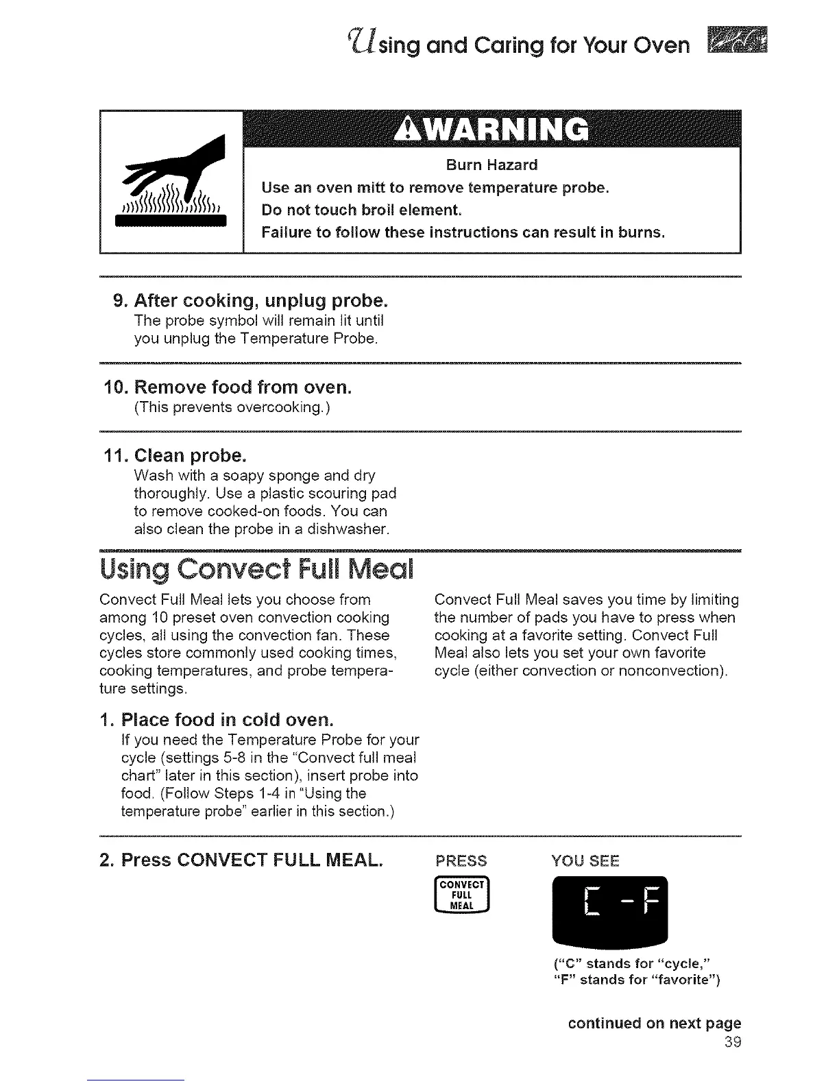 2. Press CONVECT FULL MEAL. PRESS YOU SEE