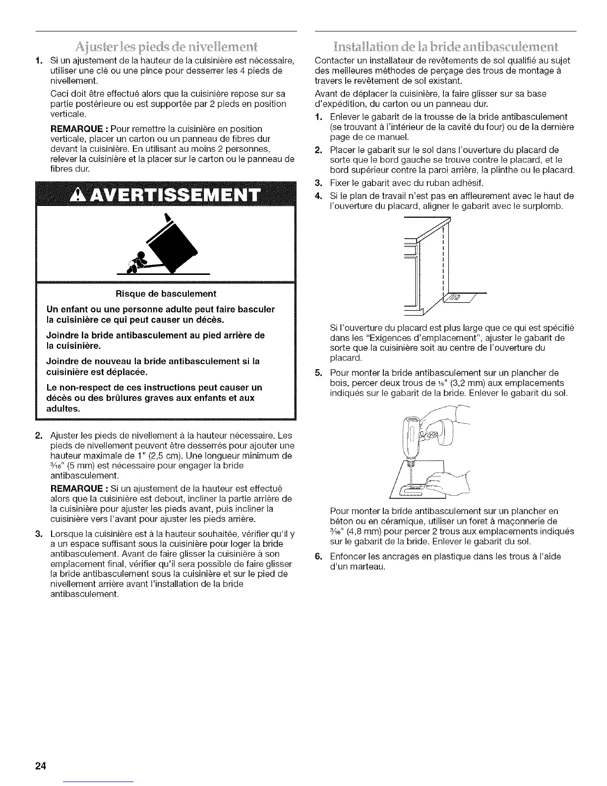 cuisiniere vers I'avant pour ajuster les pieds arriere.