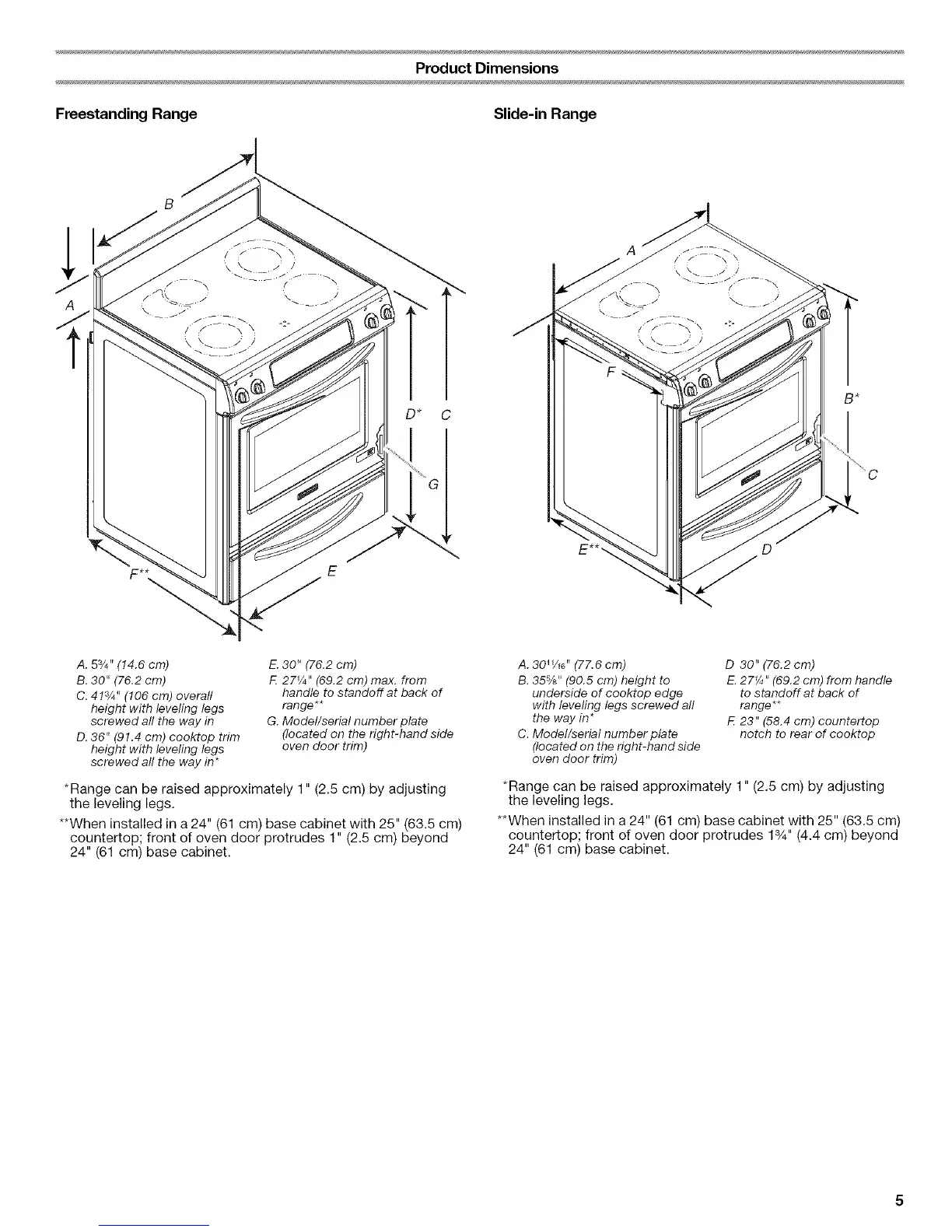 countertop; front of oven door protrudes 1" (2.5 cm) beyond