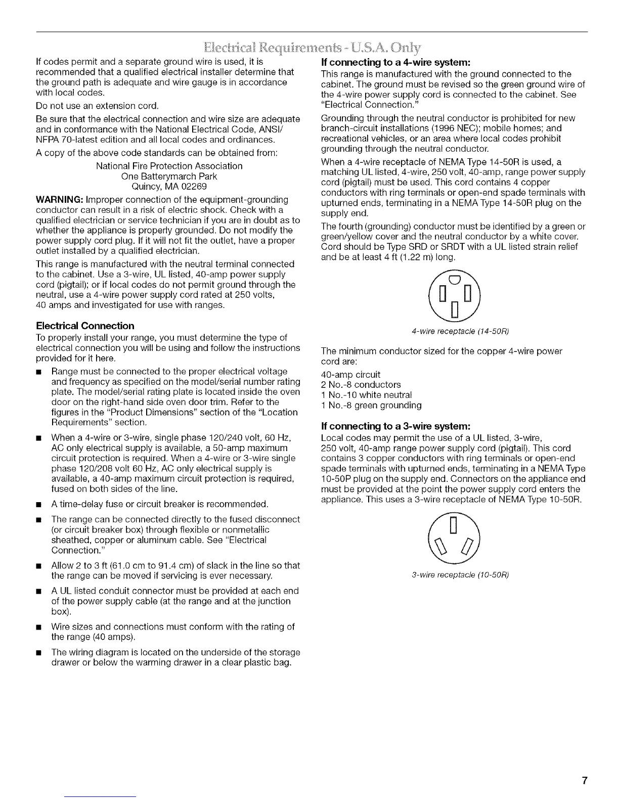 appliance. This uses a 3-wire receptacle of NEMA Type 10-50R.