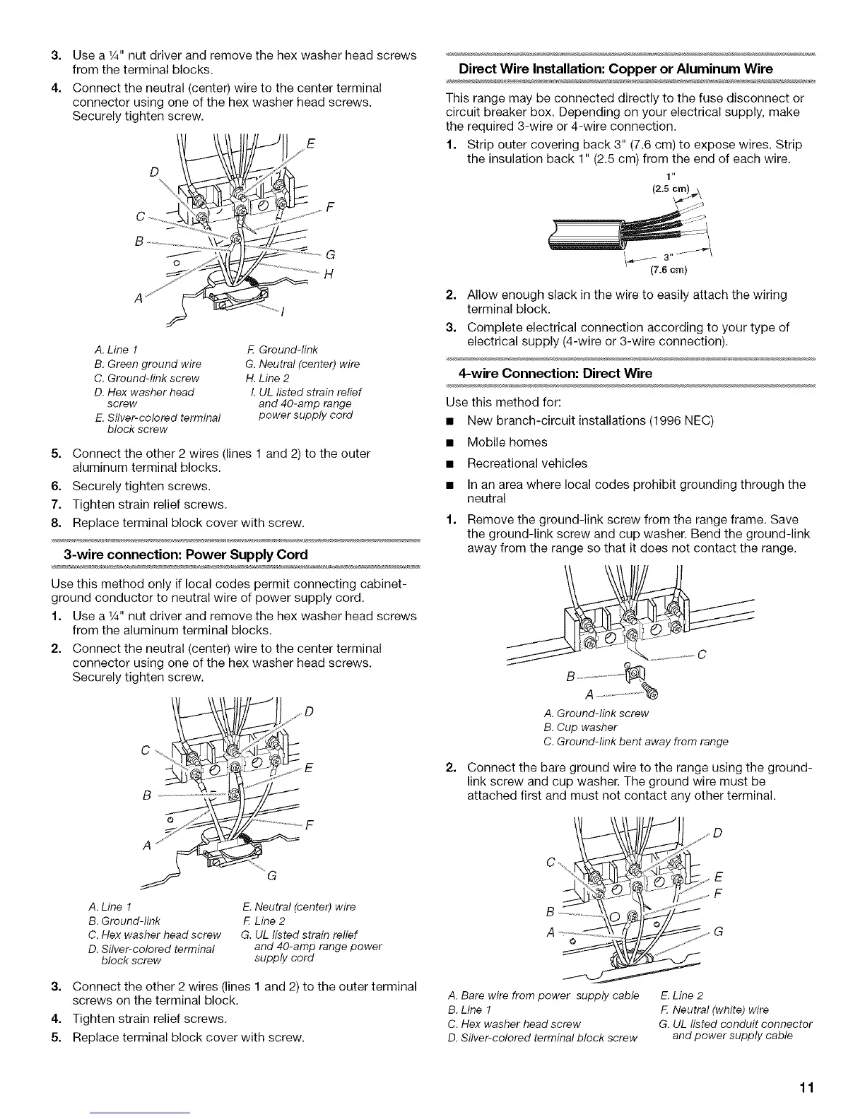 1. Strip outer covering back 3" (7.6 cm) to expose wires. Strip