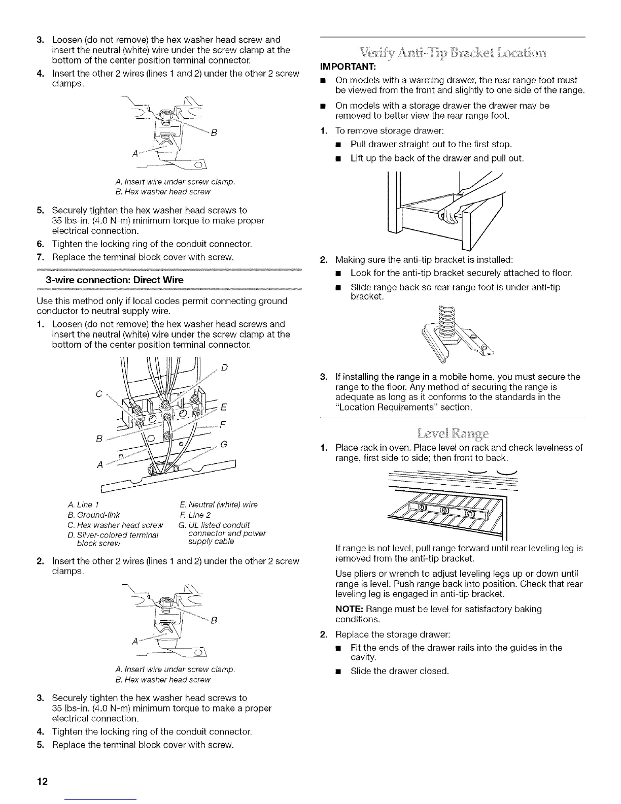 NOTE: Range must be level for satisfactory baking