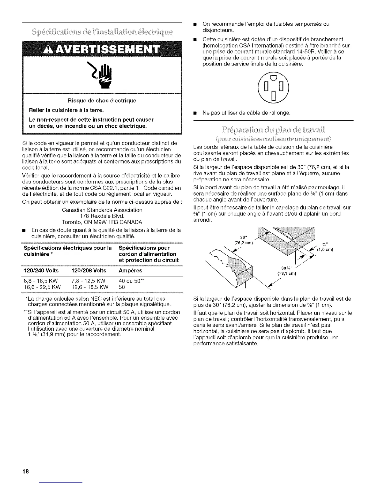 de I'electricite, et de tout code ou reglement local en vigueur.