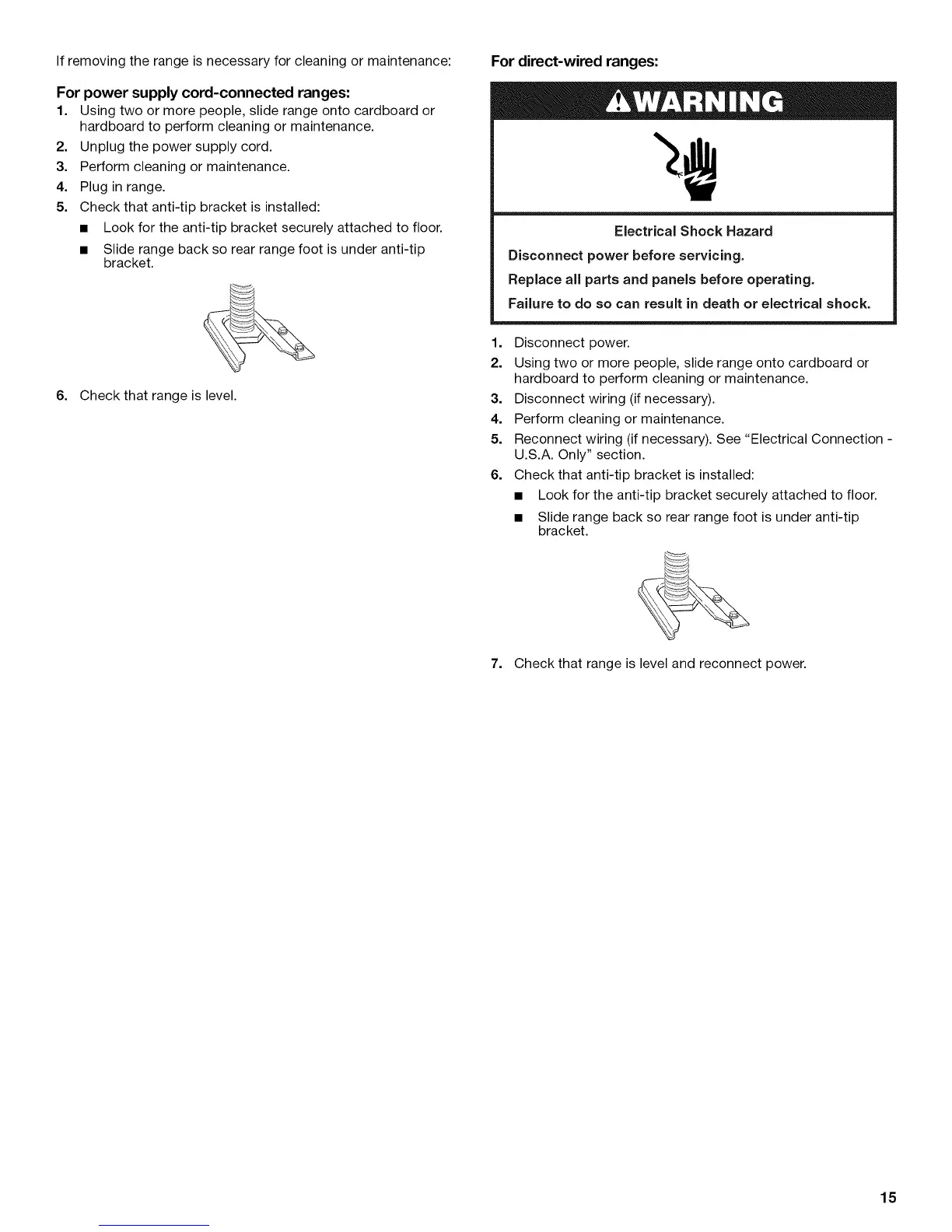 • Look for the anti-tip bracket securely attached to floor.