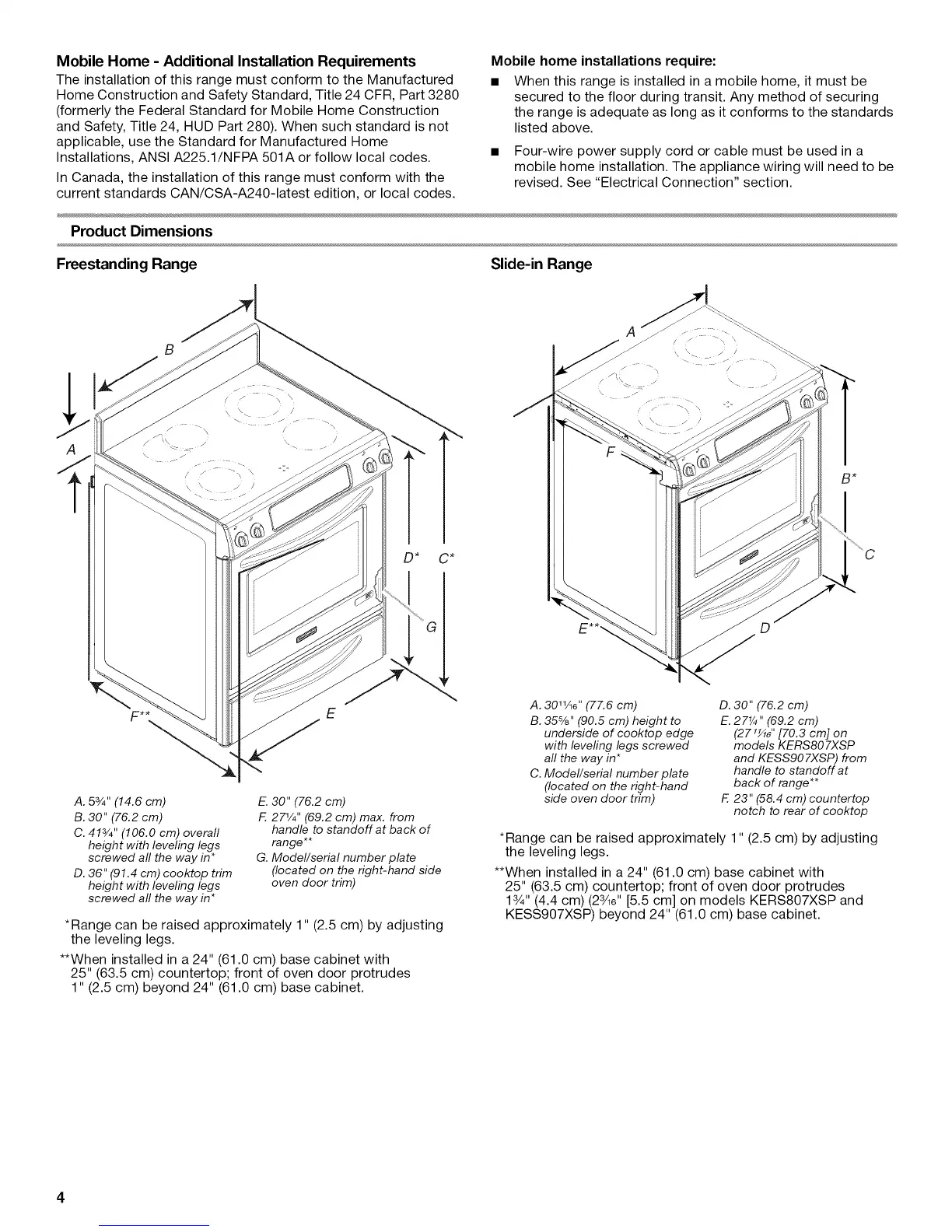 • When this range is installed in a mobile home, it must be