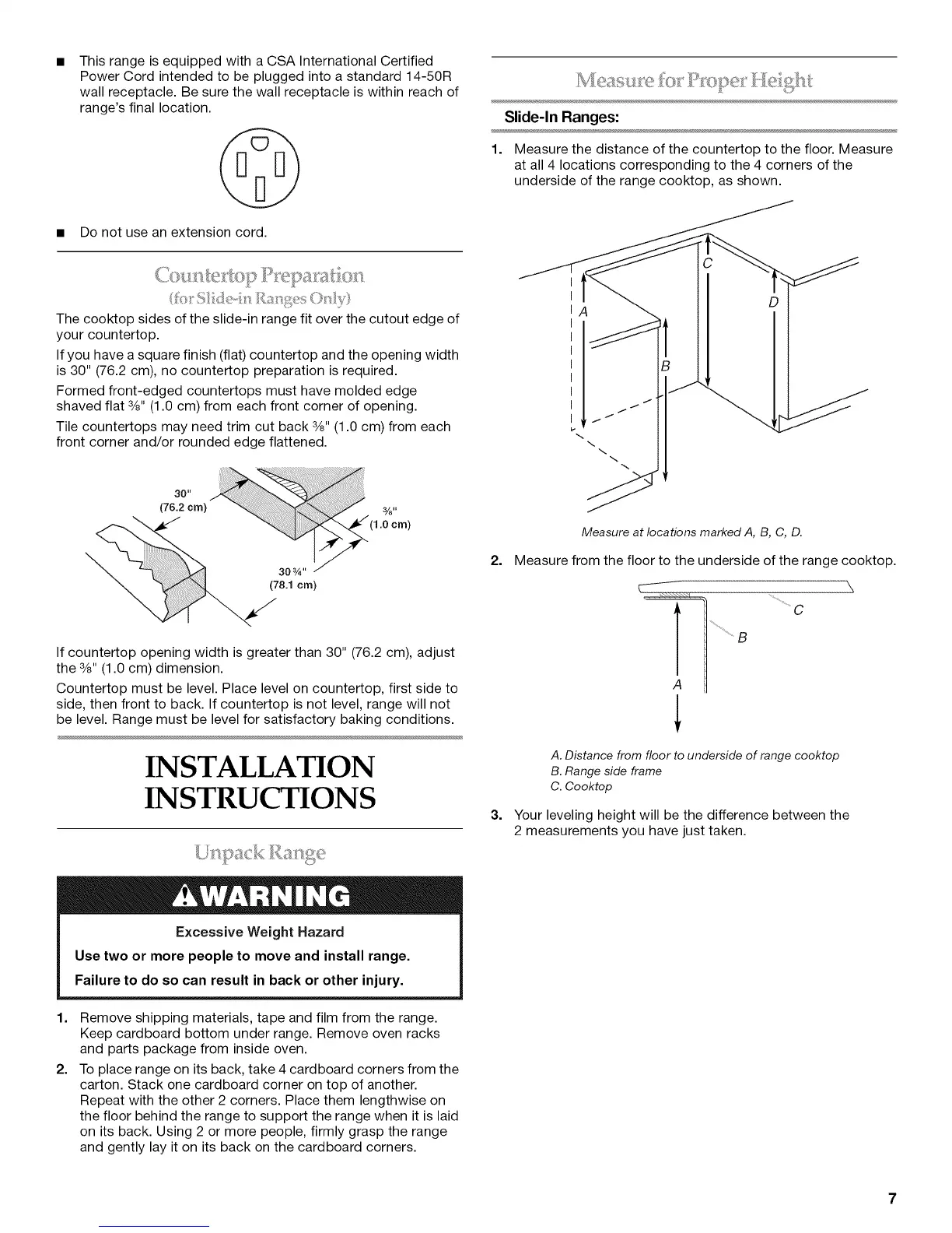 If countertop opening width is greater than 30" (76.2 cm), adjust