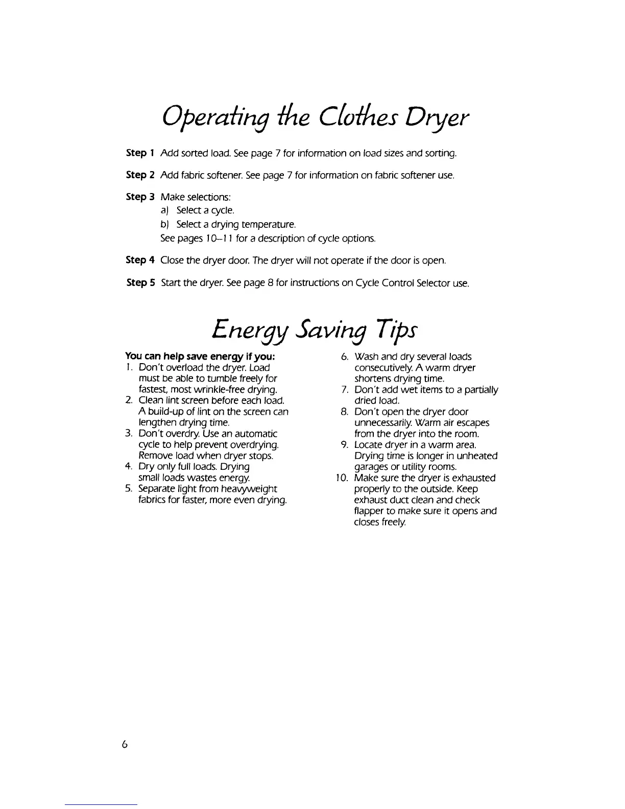 KitchenAid KEYE650V - Operating the Clothes Dryer; Operating Steps; Energy Saving Tips; Energy Conservation Practices