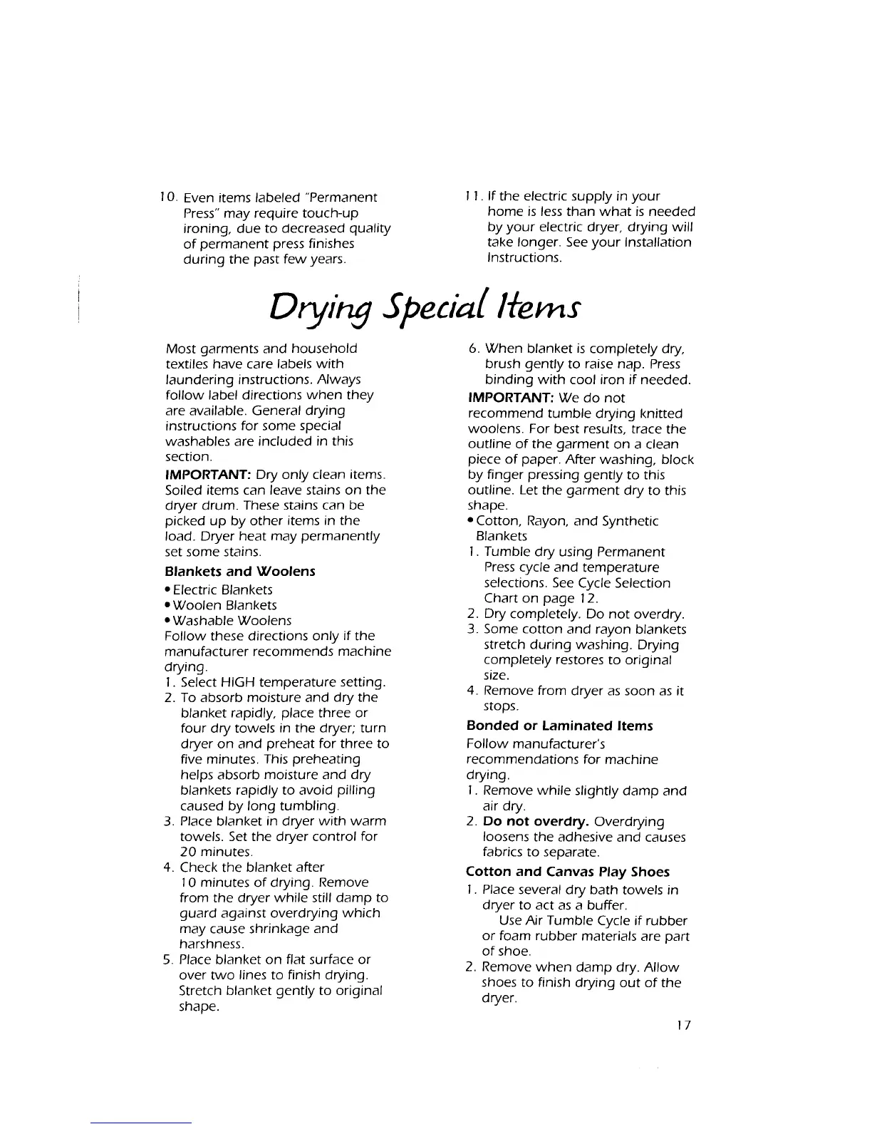 KitchenAid KEYE660W - Drying Special Items; Blankets and Woolens; Bonded or Laminated Items; Cotton and Canvas Play Shoes