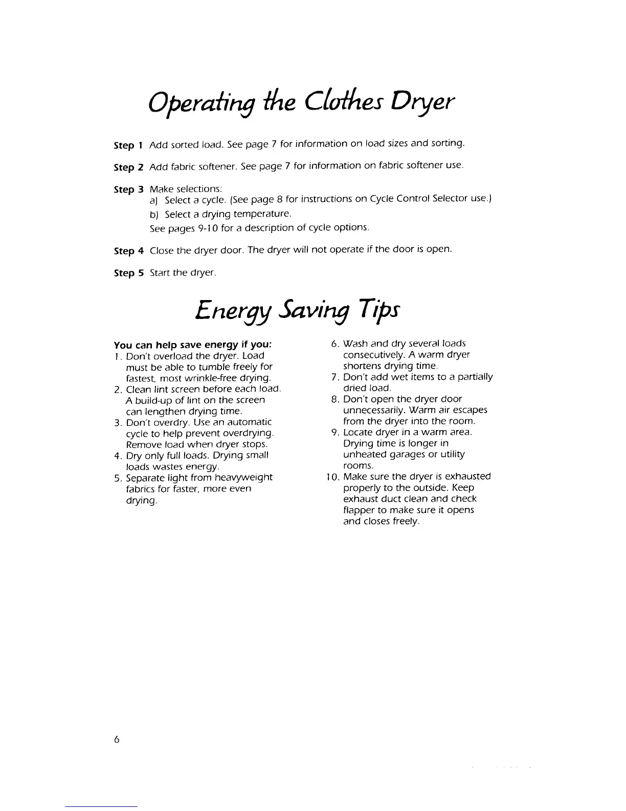 KitchenAid KEYE660W - Operating the Clothes Dryer; Energy Saving Tips