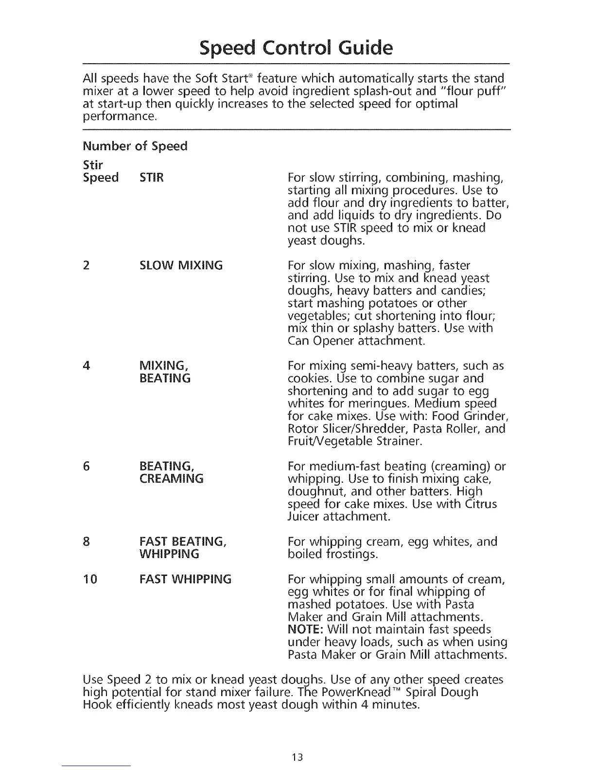 Use Speed 2 to mix or knead yeast doughs. Use of any other speed creates