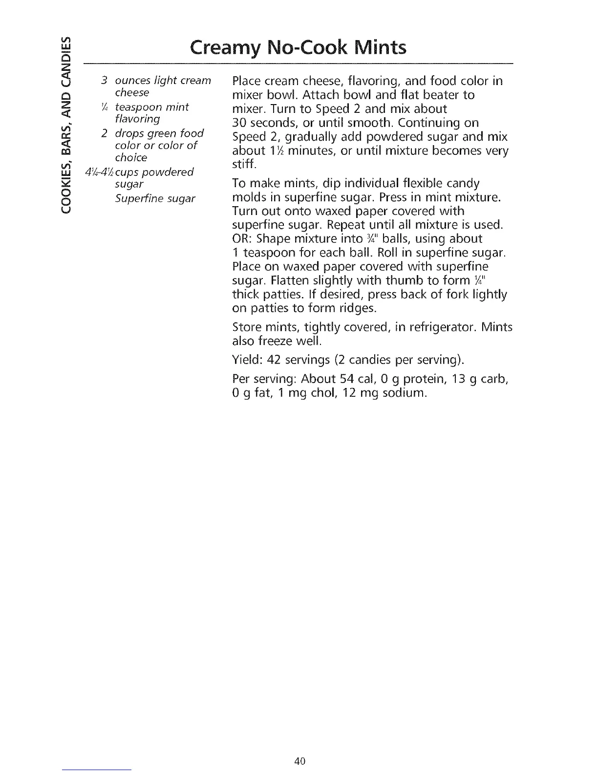 Yield: 42 servings (2 candies per serving).