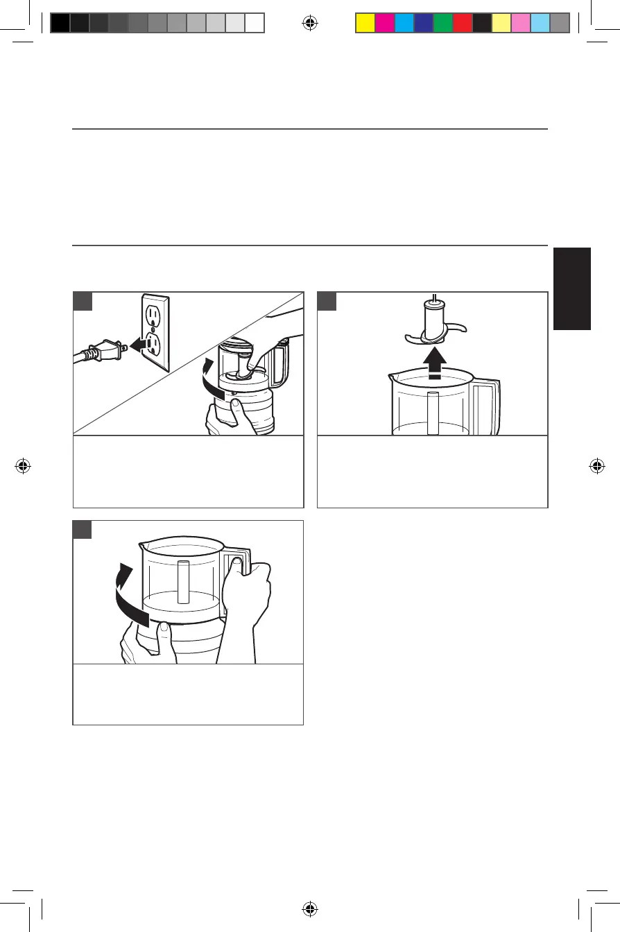 agua caliente jabonosa. Los tazones de trabajo, las tapas y la cuchilla pueden también lavarse