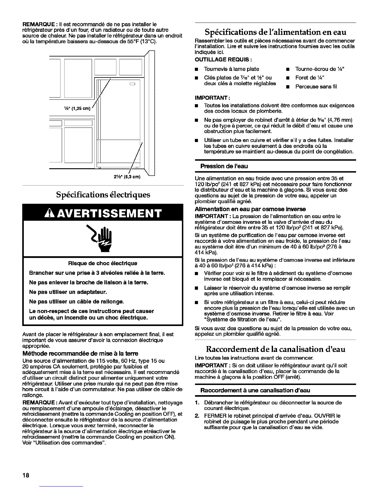 • Ne pas employer de robinet d'arr_t _ _rier de _6" (4,76 mm)