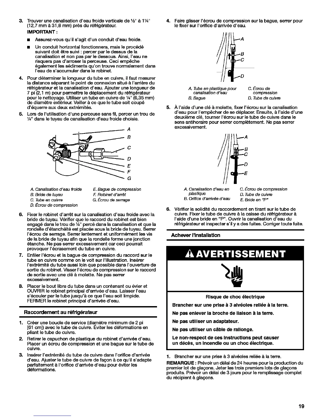 (12,7 mm _ 31,8 mm) pres du refrigerateur, le fixer ear I'orifice d'arrivee d'eau.